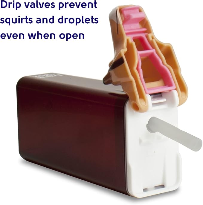 - New "heart-valve" in spout prevents drips when Drink in the Box is tipped over. Safer and better seal and locking lid prevents messy spills. Replaceable silicone straw and seal. Three year guarantee.
