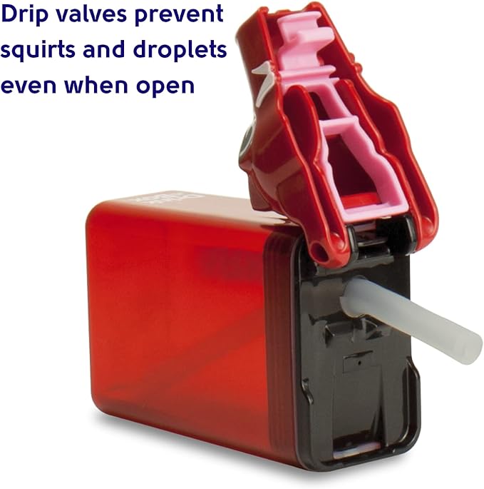 - New "heart-valve" in spout prevents drips when Drink in the Box is tipped over. Safer and better seal and locking lid prevents messy spills. Replaceable silicone straw and seal. Three year guarantee.