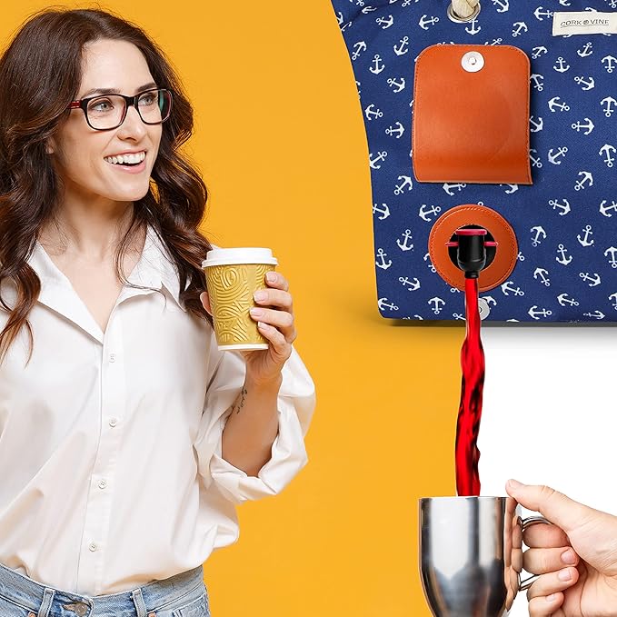 • Built-In Beverage Compartment and Spigot: Cork and Vine’s CVN2005 Navy Anchors print beach tote bag holds 1.5 liters of your favorite drink within an insulated beverage bladder. Built-in fashion flap with snap, covers and protects dispenser spout until you are ready to enjoy.