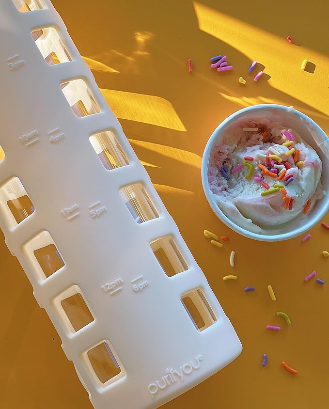 - Enhanced and Convenient: Elevate your daily hydration with our purifyou glass water bottles, equipped with Time and Volume Markings for effortless tracking. Ideal for various activities, from travel and outdoor adventures to gym sessions and office use, these bottles enhance your hydration experience.