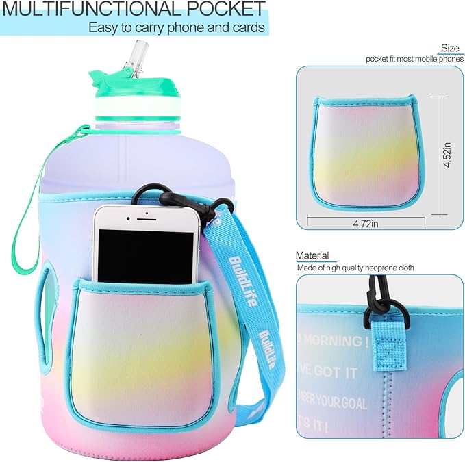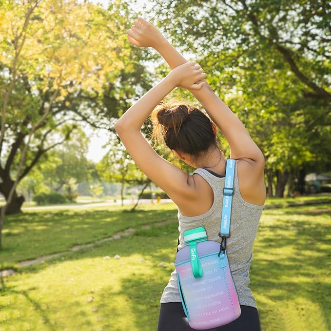 - 【 MOTIVATIONAL TIME MARKER】With unique inspirational quote and time marker, QuiFit one gallon water bottle with straw is great for measuring your daily intake of water, reminding you stay hydrated and drink enough water throughout the day. 1 gallon water jug with time marker is a must have for the gym, sports, yoga, hiking, camping, & traveling.