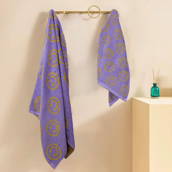 - Color : Purple Yellow Cute Smiling Face Bath Towel Sets
