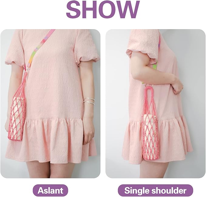 - Colorful and Vibrant: Our 3 Pcs Macrame Water Bottle Carrier comes in three vibrant colors - white, pink, and purple. The macrame design and boho-inspired look make it easy to spot your water bottle in a crowded gym or hiking trail. The quantity is enough to meet your daily use and replacement, you can also share with your friends and family members.