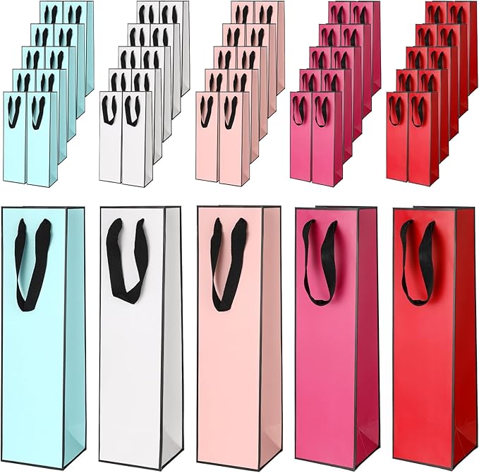 - Wine Bags Bulk: you will receive 10 pcs white, 10 rouge pink, 10 light blue, 10 wine red and 10 peach pink wine bags for wine bottles gifts; The elegant and durable bags are suitable for holiday weddings gift giving or as gift bags for wine, and also good for small business or craft fairs