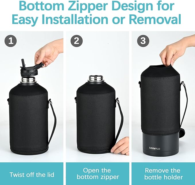 - Fits Most Flask: This water bottle pouch is made to snugly fit most 128oz flasks from common brands such as RAYMYLO, Hydro Flask and others wide mouth water bottle. Note the diameter of holder ≤10.60", height of holder body ≤6.0".