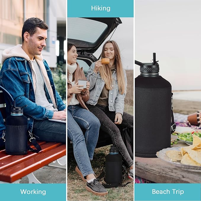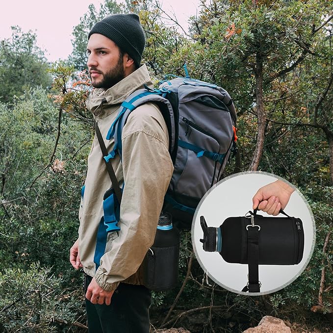 - STRONG MATERIAL AND INSULATED INSIDE: Our water bottle holder is made of high-quality and water-resistant fabric, protect your water bottle from scratches or loss.Plus, the insulated interior keeps your drinks at the ideal temperature, whether it's warm or cold.