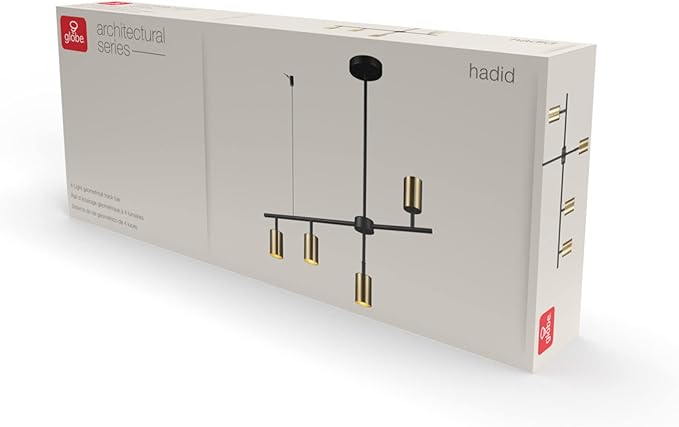 Globe Electric 64000049 4-Light Adjustable Height Geometrical Track Lighting, Matte Black, Matte Brass Accents, Ceiling Light, Pivot Shades, Track Ceiling Light, 4 Bulb Kitchen Light, GU10 Socket