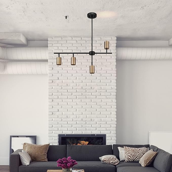 - CONCRETE COMFORT: defined by a mix of styles & aesthetics, this 4-Light Track Light expertly exemplifies concrete comfort with its geometric design, matte black & brass finishes, and adjustable height