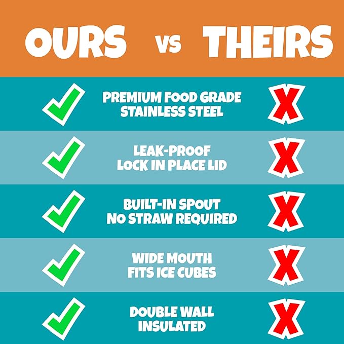 - HOLDS 13 OZ: This waterbottle holds 13 ounces of liquid, with a mouth wide enough for most ice cubes. Measuring about 8 in x 3 in, it fits on the side of most backpack pockets, making it great for Back to School, Day Care, Sports Practice, Summer Camp and more!
