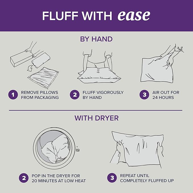 - EASY CLEAN - Our down pillow is designed to make life as easy! Simply pop them in the washer but don't put them in the dryer!