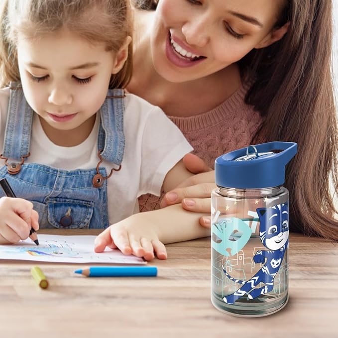LOGOVISION PJ Masks Kids Tritan Plastic Water Bottle with Straw Lid and Handle, Reusable Tumbler for Toddlers, Unisex for Girls and Boys, 12oz, Big Catboy