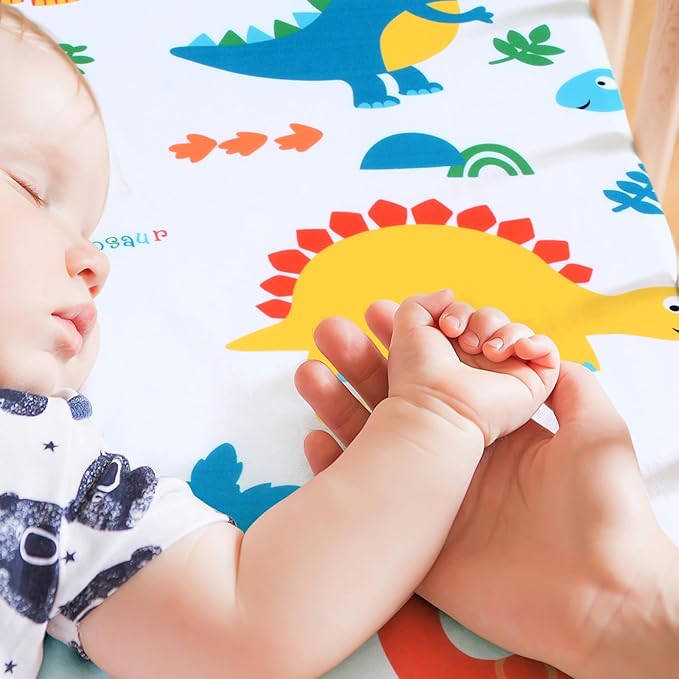 - 【Package Include And Size】: You will get 2 piece of crib sheet, Dimension 52Lx28W inch, for standard crib and toddler mattresses 52X28inch. Deep pockets make sure the crib mattress cover fit standard mattress thick. It’s not too tight so that you can pull it on and off easily by yourself. When one gets dirty needed to be washed, a great backup for you right away.