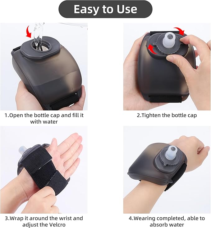 - 【Unique Bite Mouthpiece Design】The mouthpiece is ergonomically designed to prevent air return, ensuring a leak-proof seal while in motion. Plus, you can easily drink on-the-go with a simple bite. No need to open the lid.Our wearable wrist water bottle has a cap that fits snugly on the bottle, following the natural curve of your hands for smooth opening and closing.
