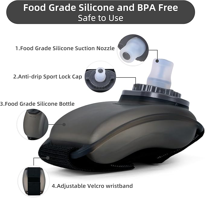 - 【Health Material】Wrist water bottles are made of food-grade platinum silicone without BPA, soft, flexible, resistant to kinking without deformation.Whether you're out for a jog, practicing yoga, or hitting the gym, this hand-held and wrist-strap water bottle makes it easy and comfortable to stay hydrated.