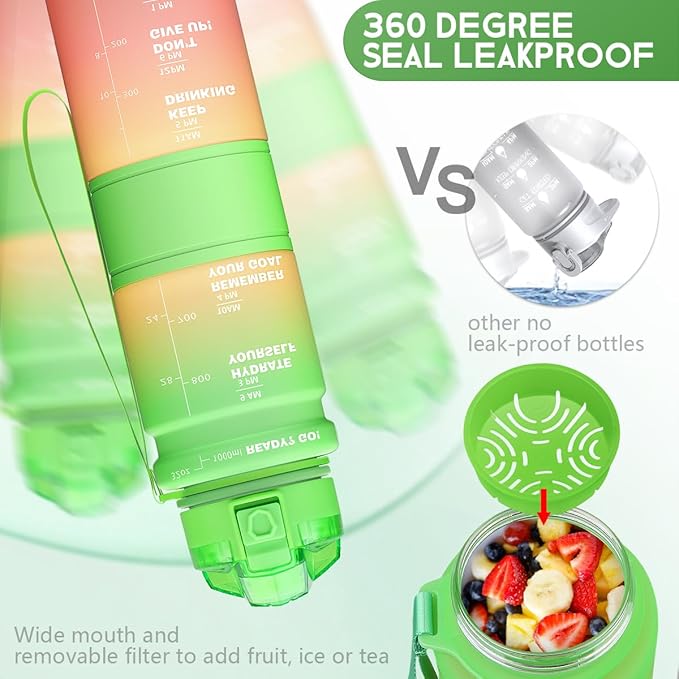 - ⚡【Ideal Gift Choice - Free Bonus CLEANING BRUSH & FRUIT STRAINER & DRINKING INSTRUCTION & GIFT PACKAGE BOX】: Our sports water bottles come in a range of colors and 17oz 32oz capacity options. Whether your family and friends are into fitness, cycling, hiking or camping, or simply enjoying a good workout at the gym or office every now and then, they will all love your gift idea!