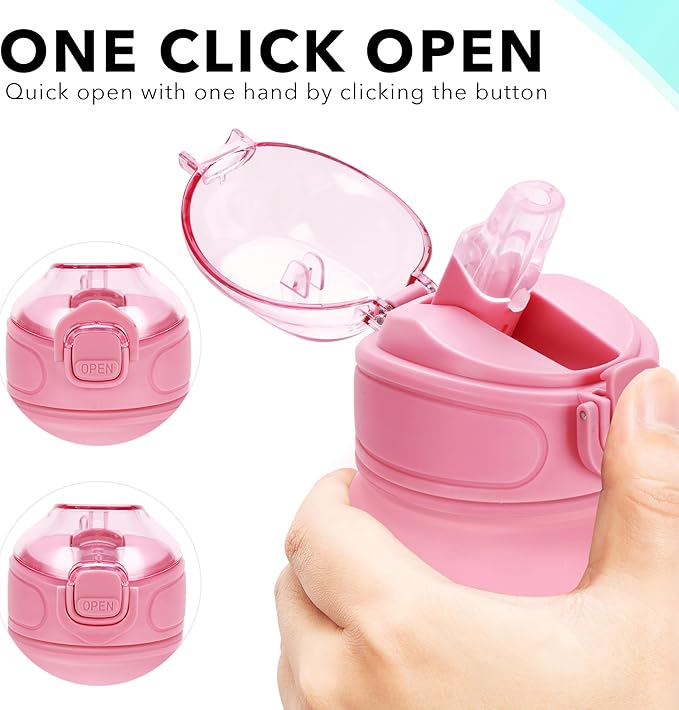 - 【Humanized Design】Open with one hand by clicking the button to access water. Highly suitable for boys and girls, and all ages. The flip-top lid is used a secure lock, making it dust-free and leak-proof. The frosted texture of the water bottle allows you to hold it better.