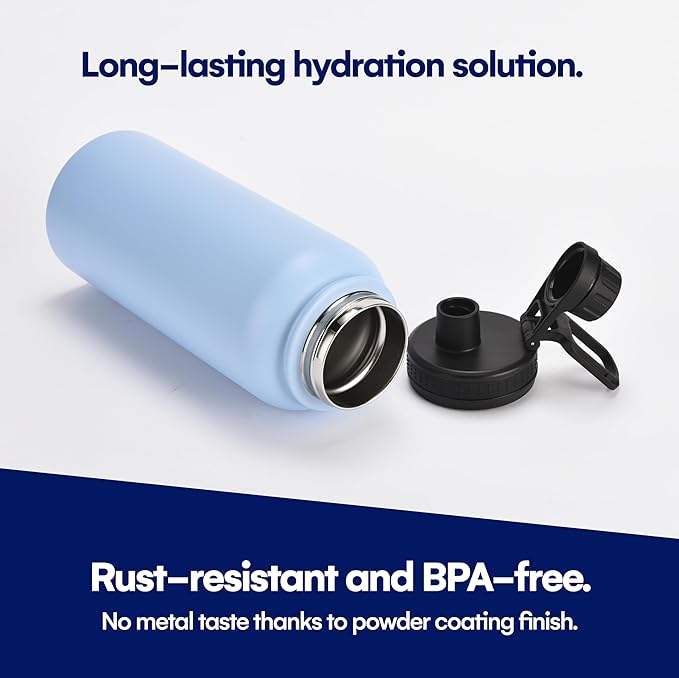 - 🛡️SAFETY AND LONGEVITY - Our stainless steel water bottle is BPA-free and rust-resistant. The powder coating finish not only enhances its aesthetics but also eliminates any unwanted metal taste.