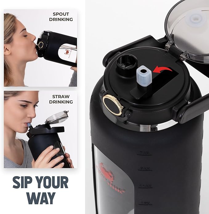 - {Substantial Capacity} - Our 64 Oz water bottle significantly surpasses others in terms of volume. This ample size ensures you stay hydrated without the need for frequent refills, making it perfect for extended exercise sessions, long runs, or intense workouts.