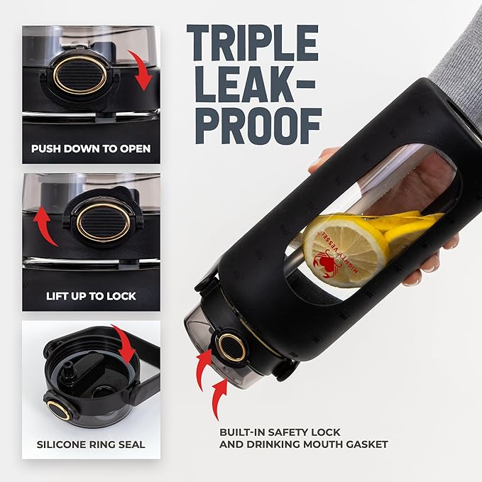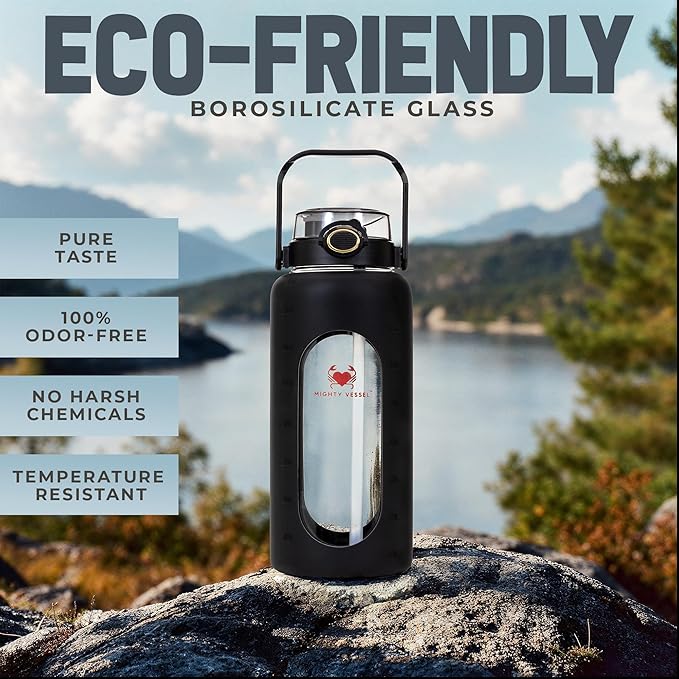 - {Unique Design} - While others are offering casual designs, our half gallon water bottle is made up of high quality glass. Clear water bottle transparent nature allows you to easily monitor your water intake, ensuring you stay on track with your hydration goals.