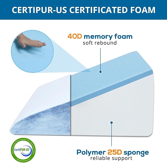- Premium Material: Our wedge pillow for back pain relief features a 25D foam base for lasting support, topped with 40D slow-rebound memory foam that adjusts to your body's temperature, providing a 3-5 second rebound to relieve pressure effectively