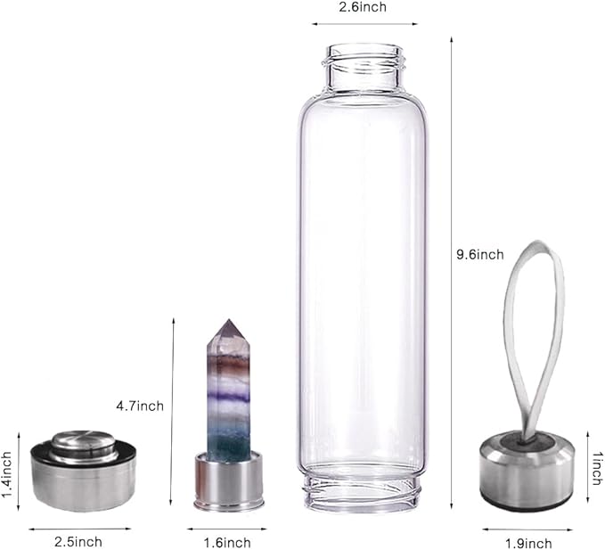 - 2.【Material】:Crystal Glass Bottle Energy Bottle is made of stainless steel and borosilicate glass. It is suitable for hot or cold drinks and easy to clean. Natural crystals are rich in minerals. In addition, this unique crystal bottle is an excellent choice even as a collectible and ornament.