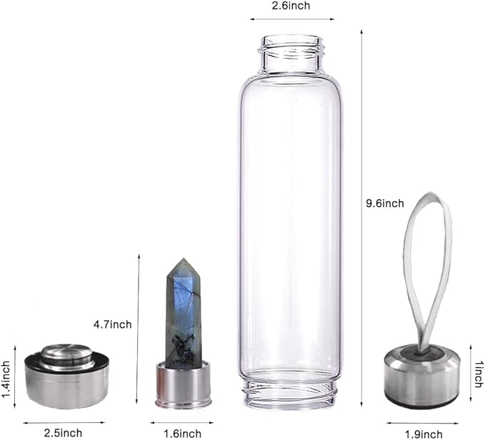 - 2.【Material】:Crystal Glass Bottle Energy Bottle is made of stainless steel and borosilicate glass. It is suitable for hot or cold drinks and easy to clean. Natural crystals are rich in minerals. In addition, this unique crystal bottle is an excellent choice even as a collectible and ornament.