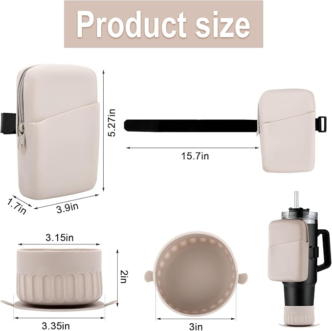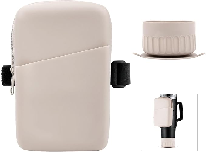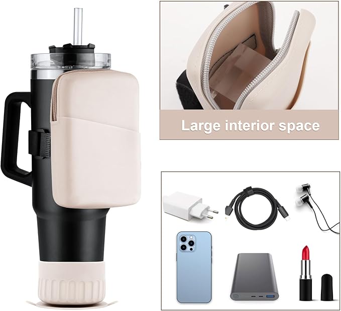 - Package Content: You will receive a pouch bag for stanley cup with adjustable magic adhesive and a silicone base with suction cups, the base can prevent from skidding. Please note that our product is not sponsored or endorsed by, or affiliated with the brands it fits, including Stanley Cup.