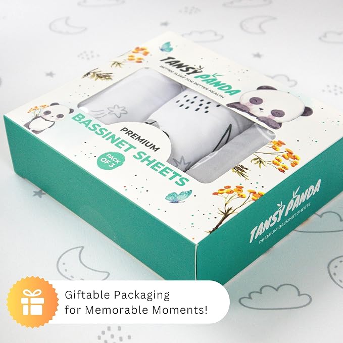 TansyPanda Bassinet Sheets for Cloud Baby, Yacul, Dream On Me Traveler, Skylar, BabyBond, Simmons, 3 Pack, 33x20 in, Ultra Soft, Breathable Snug Fit, Unisex Boys Girls, Gray White (Space Rockets)