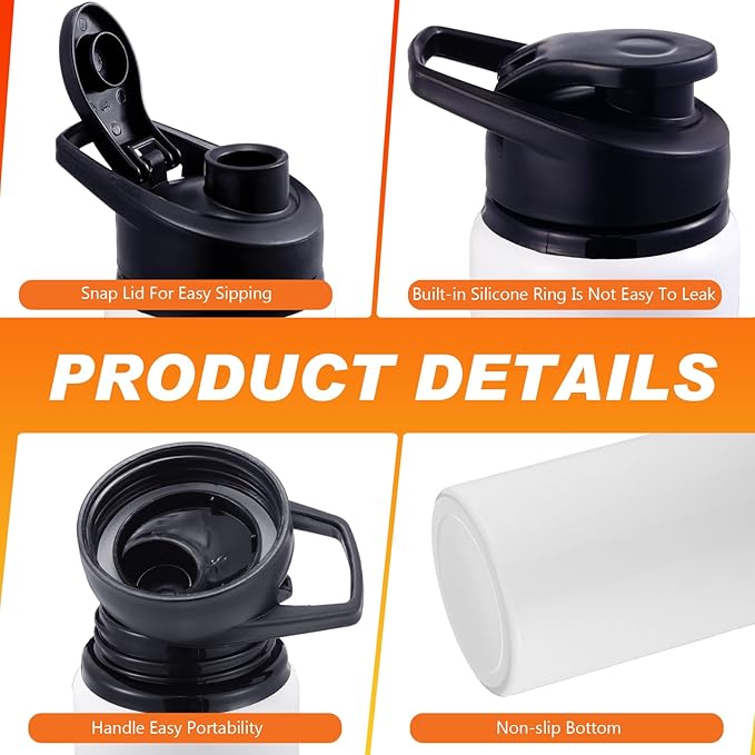 - Portable and No Leakage Design: our aluminum water bottle with a sturdy handle, is easy to carry around, and it can usually be hooked with your fingers or hung on the handlebars of your bike; The snap lid design makes the bottle not easy to leak, keeps dust away from your bottle, neat and clean, and you can store it safely in your bag