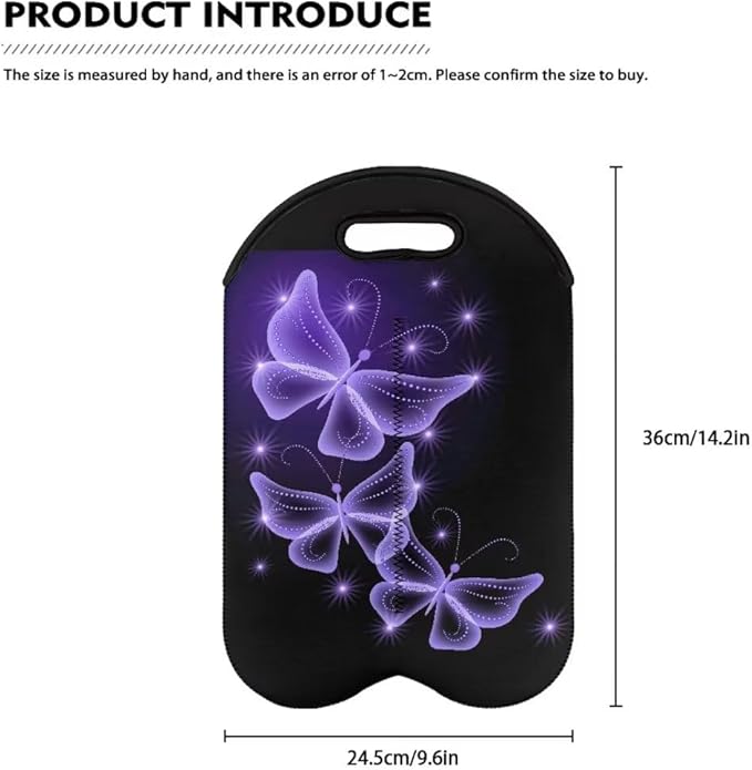 doginthehole Butterfly Wine Carrier Tote Bag 2 Bottle Pockets Insulated Neoprene Wine/Water Bottle Holder for Travel with Secure Carry Handle, Portable Wine Carrying Bag Gift for Women Wine Lovers