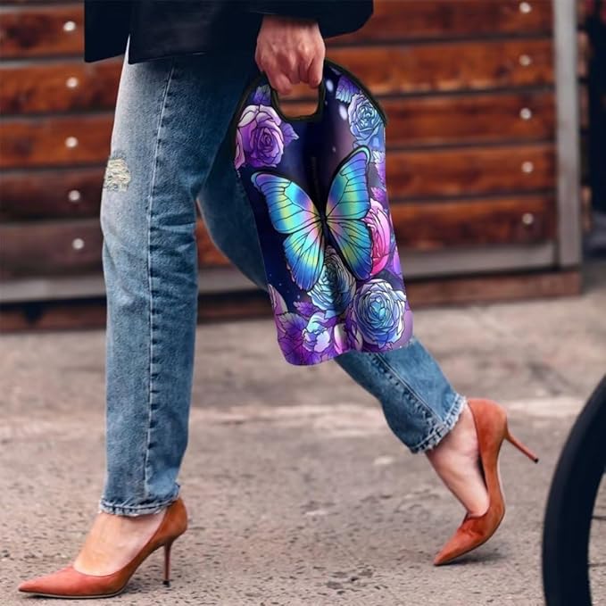 doginthehole Butterfly Rose Wine Bag Insulated Sleeve Portable Neoprene Wine Tote Holders Hippie Wine Carrier Bag for Wine/Beer/Cans/Water Protector for Home Travel and Picnic
