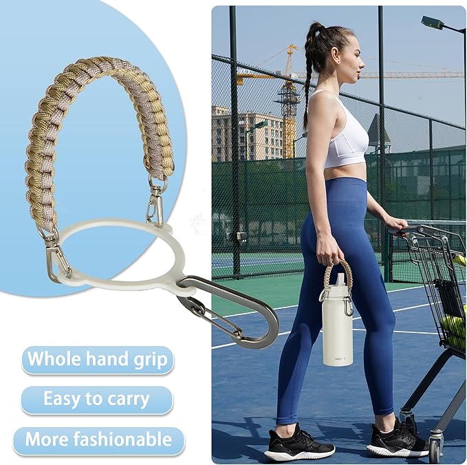 - Paracord Handles & Strap:32 oz water bottles Equipped with high quality colorful nylon braided Paracord Handles, bid farewell to the uncomfortable grip feeling, make the lifting more relaxed! Insulated 32 oz water bottle also comes with a 70.86 inches retractable strap, which can be worn directly on the body to free your hands and allow you to ride, climb, hike, rock climb and surf freely.