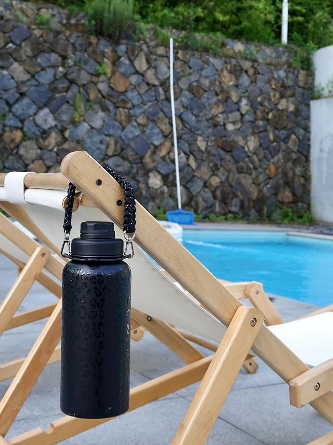 - Paracord Handles & Strap:32 oz water bottles Equipped with high quality colorful nylon braided Paracord Handles, bid farewell to the uncomfortable grip feeling, make the lifting more relaxed! Insulated 32 oz water bottle also comes with a 70.86 inches retractable strap, which can be worn directly on the body to free your hands and allow you to ride, climb, hike, rock climb and surf freely.