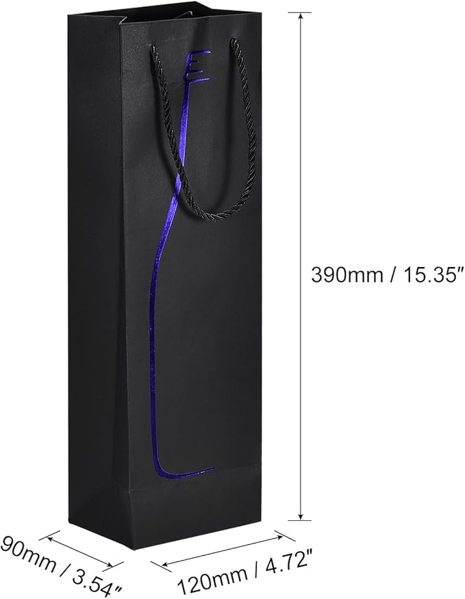 - Size: 120x90x390mm/4.72"x3.54"x15.35"(LxWxH); Material: Paper Bag; Color: Black+Blue; Products Include: 1pcs x Wine Bags; Large enough to hold a 750ml wine bottle, or other items in a similar size.