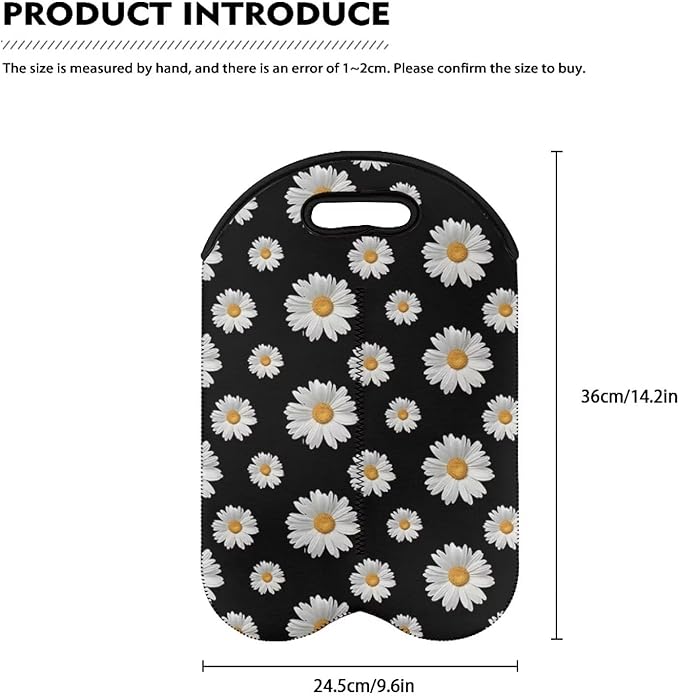 doginthehole 2 Bottle Wine Carrier Daisy Champagne Carrier Bag Neoprene Wine Tote Bags Reusable Wine Bottle Protector Insulated Wine Bag Wine Cooler Bag Wine Accessories Gift for Women Wine Lover