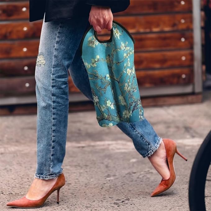 doginthehole Almond Blossom Wine Bag 2 Bottle Wine Carrier Case Reusable Wine Bottle Tote Neoprene Wine Bottle Protective Sleeve Portable Wine Carrying Bag with Handle