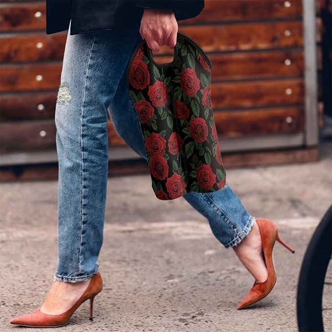 doginthehole 2 Bottles Red Rose Wine Bag Sleeve Neoprene Protective Wine Carrier Bag for Wine,Water, Champagne, Beer Insulated Wine Tote Water Bottle Holder for Travel with Carry Handle