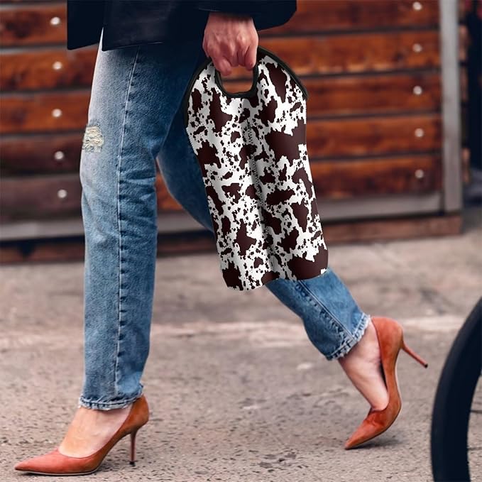 doginthehole Brown Cow Print Wine Tote Carrier Bag 2 Bottle Insulated Neoprene Wine/Water Bottle Holder Protective Travel Bag Champagne Cooler Bag for Beach Picnic Dinner Wedding