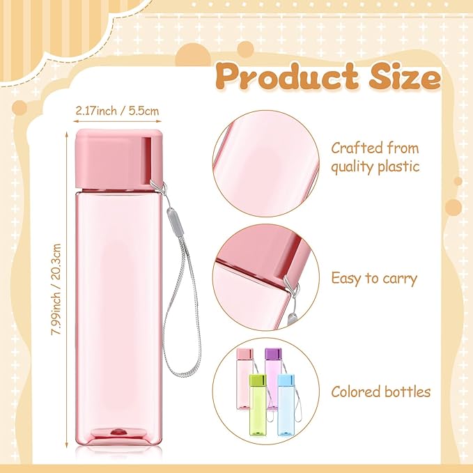 - Convenient and Versatile: our rectangle water bottles are the nice companion for an active lifestyle; With a compact size of 2.17 x 7.99 inches/5.5 x 20.3 cm, they are easy to carry and fit in your bag, making them ideal for travel, gym, school, and work