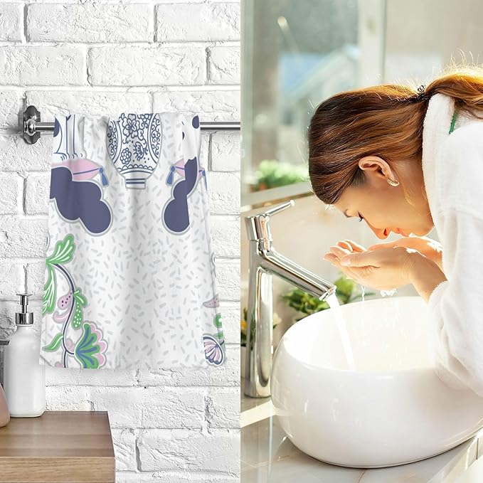 Staffordshire Dogs Chinoiserie Style Bath Hand Towel Soft Cotton Highly Absorbent Fingertip Towels for Bathroom Beach Kitchen Sports Gym Yoga Travel (2-Pieces Towel Sets, 28x16 inch)