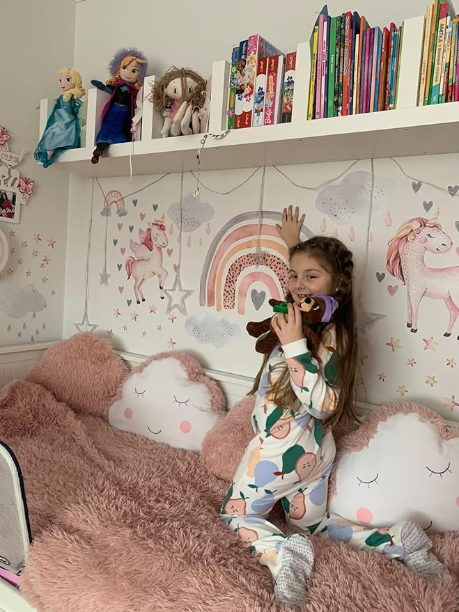 Large Rainbow Wall Decals by Lipastick - 138 pcs Rainbow Wall Stickers - Unicorn Wall Decals for Kids Bedroom Room Nursery – Kids Wall Stickers Cloud Stars Ponies - Waterproof Wall Art Décor M Size
