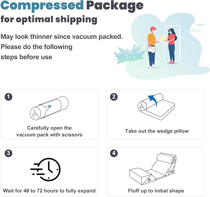 - Easy to Carry & Store: Compared to traditional wedge pillows, bdeus bed wedge pillow set can be COMPRESSED to reduce the size and is portable for travel. We include 2 vacuum bags and 1 storage bag to make storing hassle-free without taking up space.
