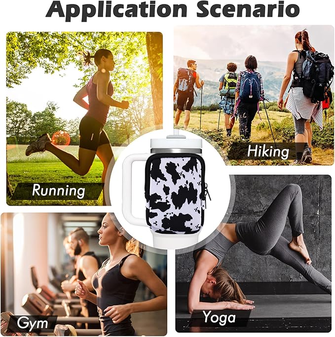 Water Bottle Pouch Cup Accessories for Women Quencher Adventure IceFlow 20oz 30oz 40oz Tumbler Pouch with Handle Running Pouch Bag for Cards Keys(Cow)