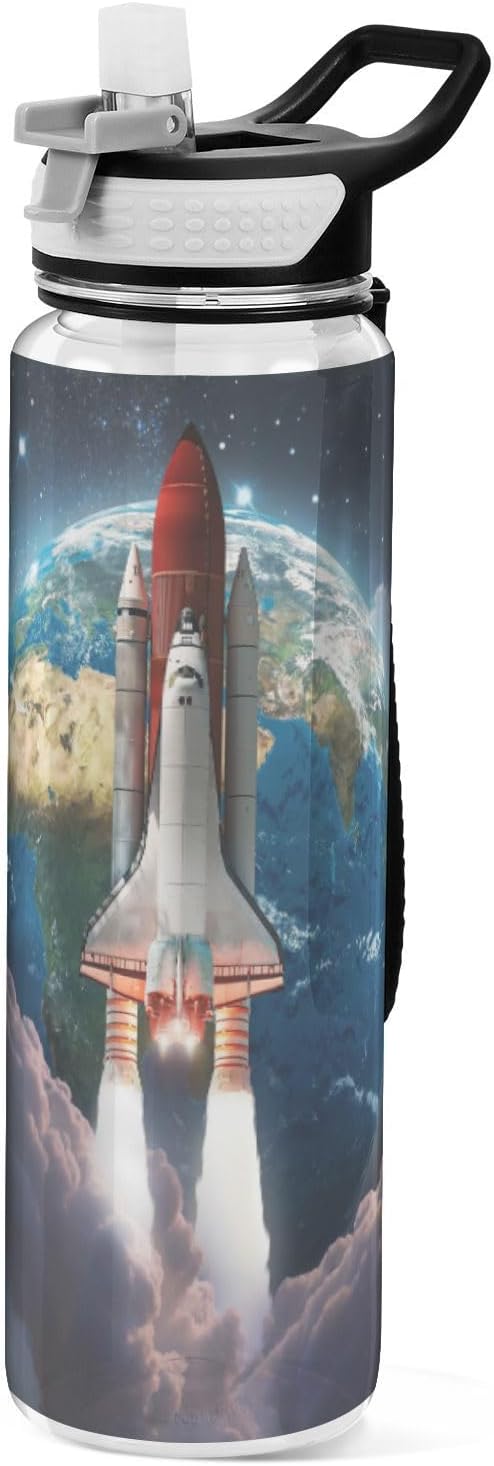 Airplane Galaxy Water Bottle with Straw Sky Sports Bottles BPA-Free Tritan Water Jug with Carrying Strap for Women Men Gym
