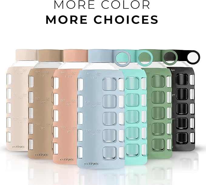- Stylish and Functional: Add style to your hydration routine with our glass bottles featuring a vibrant, durable silicone sleeve and lid. Choose from a variety of colors to match your personal style while enjoying the added benefits of impact protection and a secure grip.