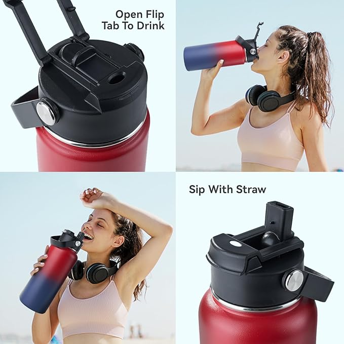 Kerilyn Stainless Steel Insulated Water Bottle, 40oz Double Wall Vacuum Insulated Water Bottle Leak Proof with Silicone Straw, Wide Mouth Lid, BPA Free, Keep Cold and Hot, 40oz, Red Gradient