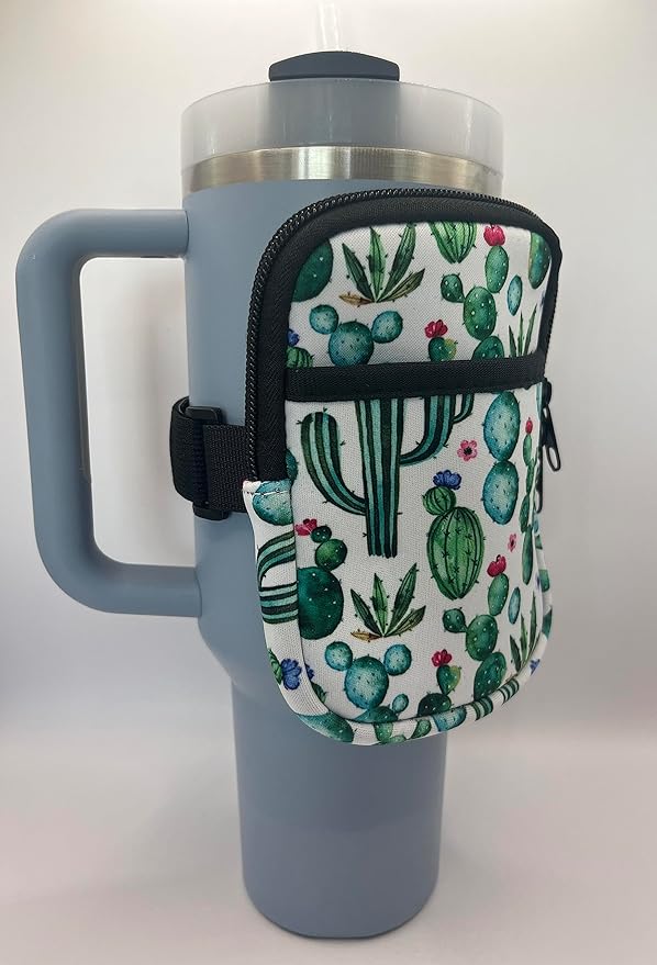 Neoprene Water Resistant Water Bottle Pouch with Adjustable Velcro, Gym Accessories, Sports Armband, Compatible with Stanley Quencher (Cactus)