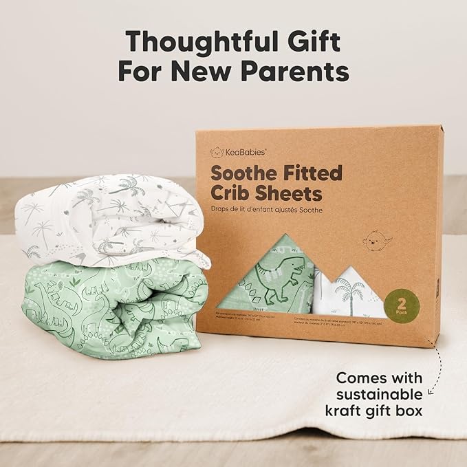 - 2-Pack Fitted Crib Sheets - Each KeaBabies Soothe Baby Crib Sheets set comes with two organic crib sheets for boys and girls that can perfectly fit the standard nursery crib mattresses sized at 52” x 28” and height of 3” to 8”.