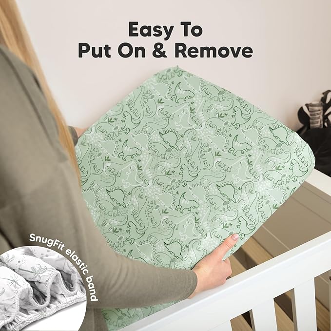 2-Pack Organic Crib Sheets for Boys, Girls - Jersey Fitted Crib Sheet, Baby Crib Sheets Neutral, Crib Mattress Sheet, Cotton Crib Sheets, Breathable Crib Sheet, Baby Mattress Sheets (DinoDood)