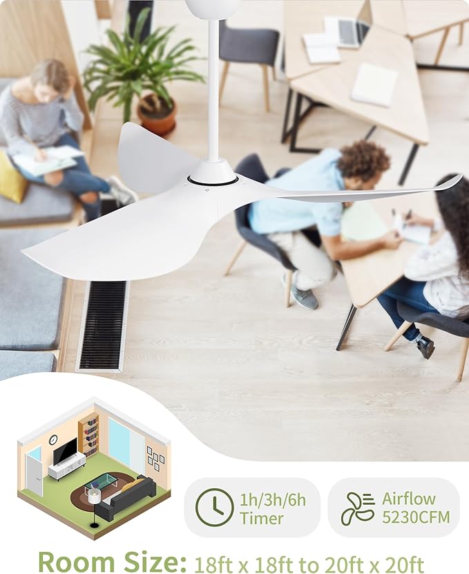 - Remote Control - The smart ceiling fan's remote control comes with almost all the functions you need: 6 wind speeds, 2 rotation types, and a 1h/3h/6h timer to ensure you can select the mode you want.